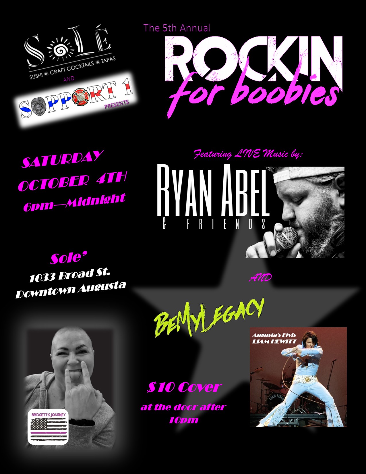 This purchase is good for one (1) VIP Table for Sponsorship at the 5th Annual Rockin for Boobies Event at Sole, 1033 Broad St, Augusta, GA on Saturday, October 4th, 2025. Each table comes with up to eight (8) VIP Tickets.